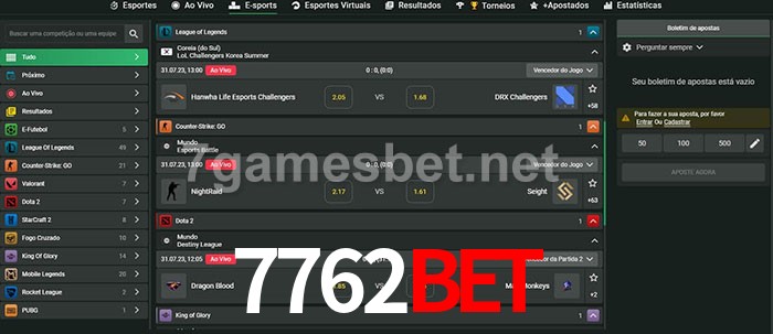 O 7762Bet oferece uma grande seleção de opções de apostas em e-sports com probabilidades competitivas